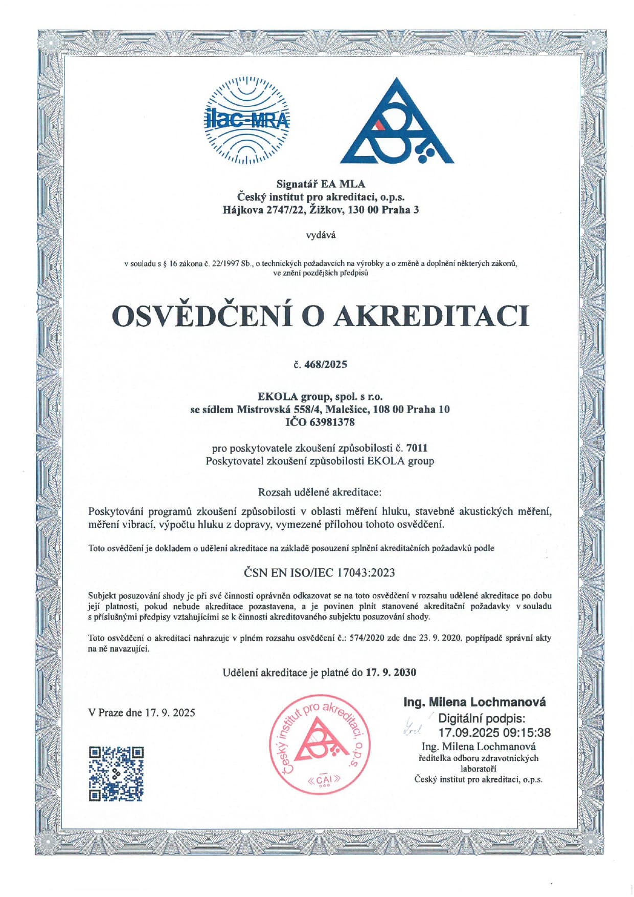 (dále v textu ČIA) dle ČSN EN ISO/IEC 17043:2023.